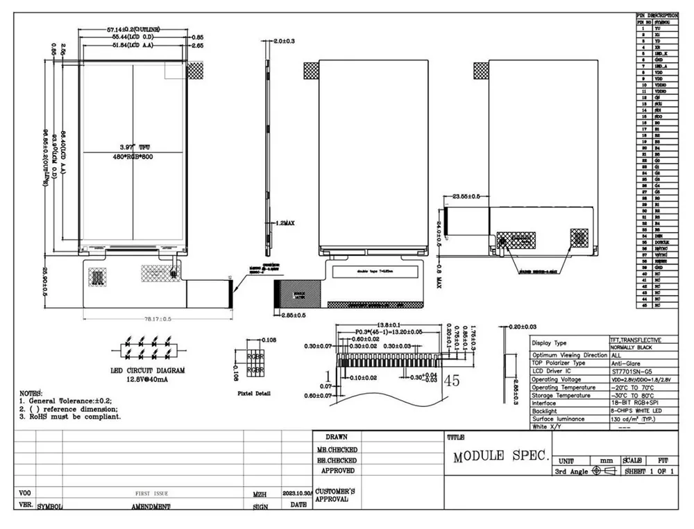 ЖК-дисплей TFT-это тип жидкокристаллического дисплея, который использует технологию тонкопленочных транзисторов для повышения качества изображения, и он имеет многочисленные применения в повседневной жизни. Как профессиональный производитель модулей TFT и поставщик в Китае, что отличает трансфлексивный IPS TFT-LCD Victronix 3,97 дюйма 480 × 800 от других производителей? Первоначально он предлагает типичную яркость 130 CD/M² и широкие углы просмотра на 85 ° (все направления), обеспечивая превосходную читаемость с разных сторон. Во-вторых, он интегрирует подразделение подсветки с использованием белого светодиода с 8-х дюймом с типичным сроком службы от 30 000 до 50 000 часов (до 50% начальной яркости), обеспечивая четкую видимость во всех условиях освещения. Кроме того, он поддерживает 18-битный RGB Parallel + 3-Line SPI-серийный и контроллер ST7701SN-G5. Кроме того, он проходит строгие экологические испытания, в том числе высокую/низкую операцию/хранения, влажность, тепловой удар и защиту ESD (контакт: 4 кВ, воздух: 8 кВ), гарантируя, что он может беспрепятственно работать в расширенном температурном диапазоне (от -20 ° C до +70 ° C).